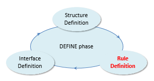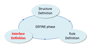 The sequence of subphases Structure Definition - Rule Definition - Interface Definition suggests an ordering in time but this is relative. In a greenfields situation, you usually specify structure first, then rules, and then interfaces. In all other cases, you are likely to make alterations to all three as you go along. Most rules clearly depend on structure. Interfaces are also fairly clearly related to underlying structure, but less so on rules.