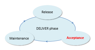 In spite of the arrows in the picture, the DELIVER phase does not normally show many circular iterations from Release through Acceptance to Maintenance: