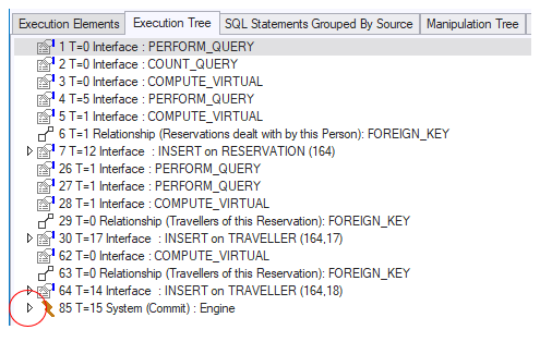 The Manipulation Tree tab page presents the timing characteristics of the total manipulation. These are the characteristics of all manipulations started due to SQL statements within this manipulation.The format is :