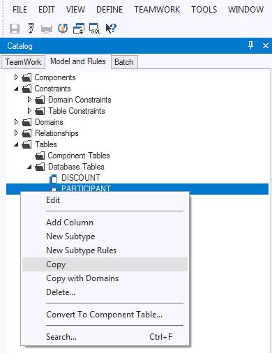Be careful with copying subtype constellations because this "COPY_..." behaviour applies only to the top-level supertype table and subtype tables will be overwritten. Also, if you choose to copy Domains of a Table, the "COPY_..." behaviour applies only to the Table; the Domains will be overwritten.