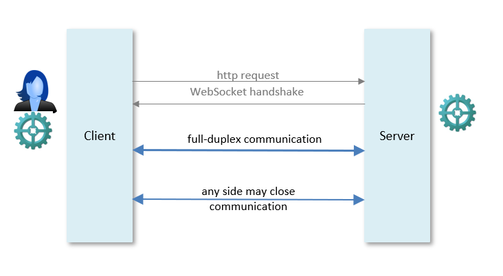 A WebSocket service is a software construct that uses WebSocket protocol for the communication between the server and the client. The WebSockets protocol is intended for real-time Internet communication that enables real-time architecture.