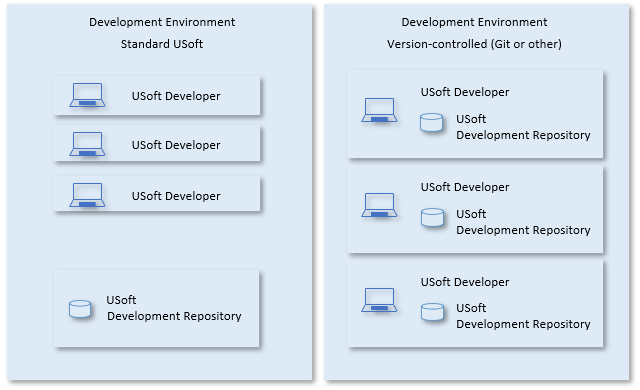 From USoft 11, a developer team can connect USoft to a version control system such a Git.