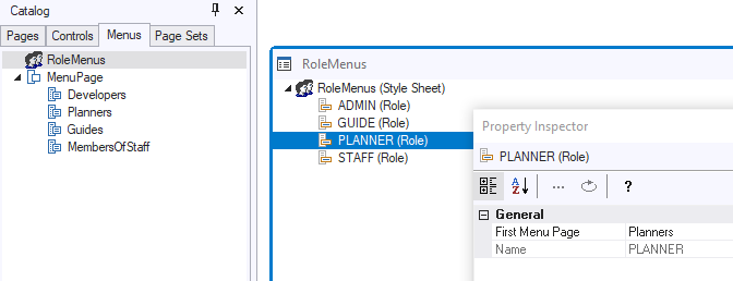 This example shows a 1:1 mapping between menus and roles, but even better is to create a Master Menu with all the options, and then make subclasses in the menu catalog for the individual roles. This is best practice in many cases, because usually, what defines role-based access is that a role must be disallowed certain options, and it is easy to delete a menu line from a subclass menu. Why would you bother with a Master Menu?