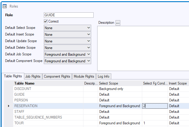 • Role conditions attached to INSERT, UPDATE and DELETE rights can have either Foreground or Background scope.
