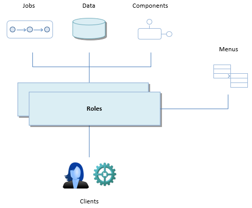 The only way in which a user (a client) can have access to data, jobs and components is through roles.