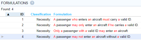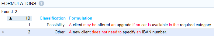 These examples show that USoft Studio automatically provides Necessity: captions to the left of business rules: