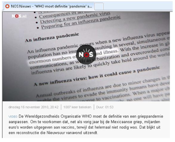 "The World Health Organisation (WHO) has had to adjust its definition of 'influenza pandemic'. This was to prevent that, in the same way as last year with the 'Mexican influenza', billions of euros are spent on public vaccination programmes, when it was found that this expense was not really necessary."