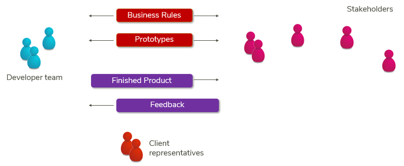 A USoft team typically communicates with stakeholders (a) through business rules and (b) with the help of software prototypes.