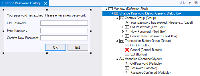 For example, if the dialog must open when the user presses a button, select the button's Action property. If the dialog must open when the user chooses a menu option, select the menu line's Script property.