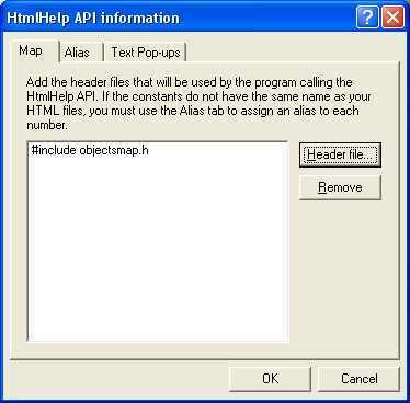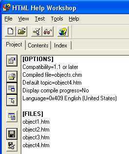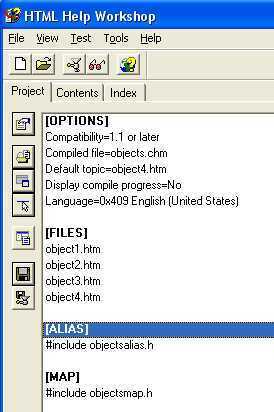 6. In the HTML Help workshop, the map and alias files must now be included in the objects.hhp project file.
