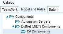 - Double-click the C# Components node in the Model and Rules catalog: