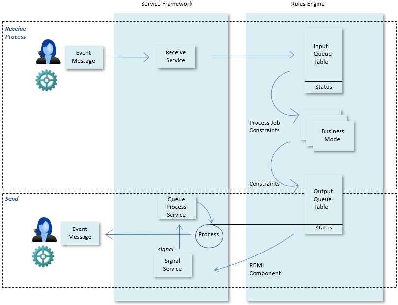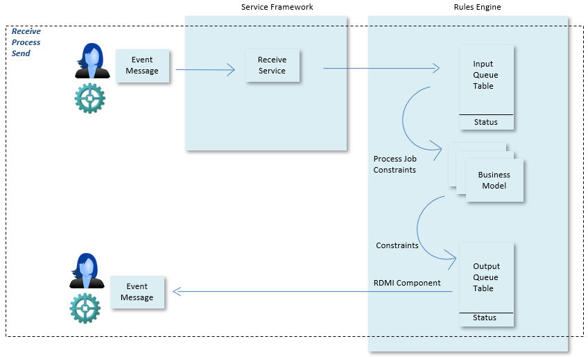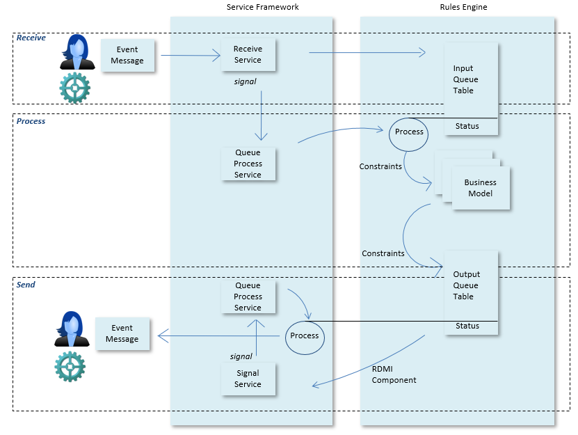 In asynchronous input processing, the input is stored in a queue table when it arrives and a separate queuing service will pick it up for processing. As part of this processing, a response is sent immediately if necessary.