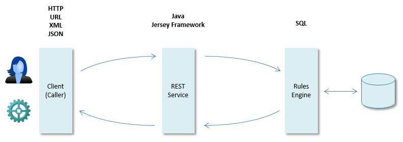 This help topic takes REST services as an example. In USoft REST, on behalf of the caller or client, this Rules Engine will retrieve or manipulate data (referred to as resources in the context of REST). Non-REST services may be less data-oriented but otherwise share most of the characteristics discussed in this help topic.